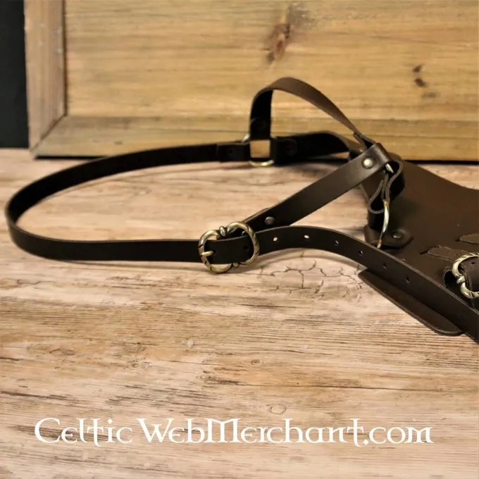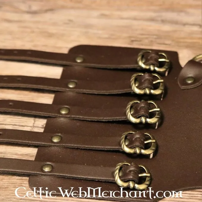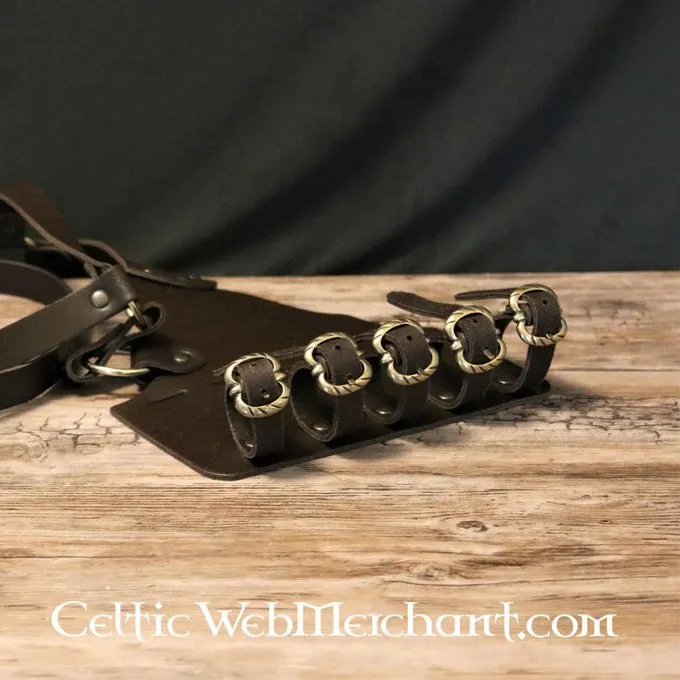 Deze bandelier is een replica van laat 16de-17de eeuwse originelen afgebeeld op verschillende Hollandse schilderijen. Bandeliers werden zowel rond de schouder als aan het middel gedragen. Deze bandelier is ontworpen om aan het middel te worden gedragen. Hij is gemaakt van een hoge kwaliteit leer en kan gemakkelijk op de maat van de rapier of zwaardschede worden aangepast.