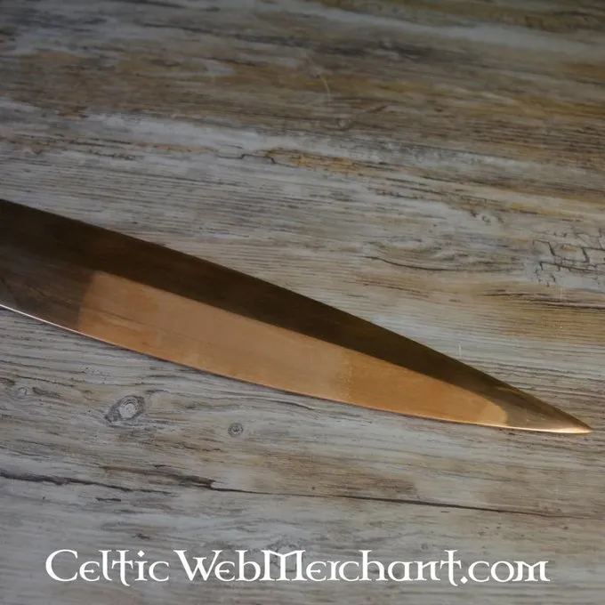 Productdetails: Lengte: 82 cm / Klinglengte: 66 cm / Griplengte: 16 cm / Gewicht: 1480 gram / Staaltype: Brons / Snede: Semi-scherp / Tangconstructie: Volledige tangconstructie inclusief pommel / Gripwikkeling: Brons / Gebaseerd op historisch origineel: J