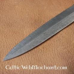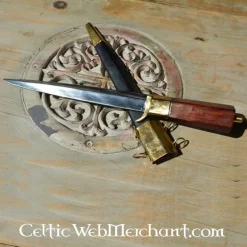 Dergelijke korte dolken waren in de middeleeuwen erg populair. Niet alleen bij ridders als wapen naast hun zwaard, maar ook door gewone soldaten, piekeniers en boogschutters. Dit model werd tussen de 14de en 15de eeuw gebruikt. De dolk heeft een kling van getemperd verenstaal en is bot. Hij is dus geschikt voor lichte zwaardgevechten. De dolk wordt geleverd inclusief houten, met leer overtrokken schede.