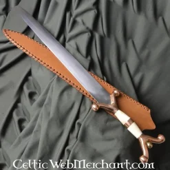 De kling van dit zwaard kan voor een meerprijs bot (2,5-3 mm) worden gemaakt. Let op: hoewel de kling hierdoor een battle-ready dikte krijgt, vervalt met het gebruik van de afbotservice de garantie en het retourrecht. Wenst u gebruik te maken van deze service, neem dan contact met ons op of geef dit aan in de laatste stap bij afrekenen van uw winkelwagentje. Houd u rekening met een levertijd van ongeveer 2 weken extra.