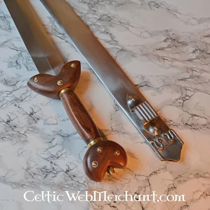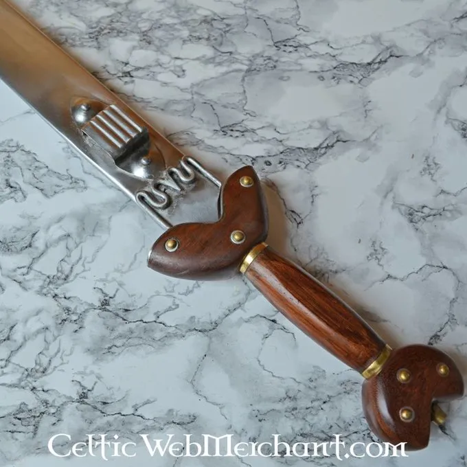 Dit zwaard is een replica van een exemplaar uit de 3de-1ste eeuw v.Chr. uit het Marnegebied, dat tegenwoordig deel uitmaakt van de collectie van het Musée d`archéologie nationale. Dergelijke zwaarden werden ook gebruikt in de tijd van Caesars Gallische oorlog.