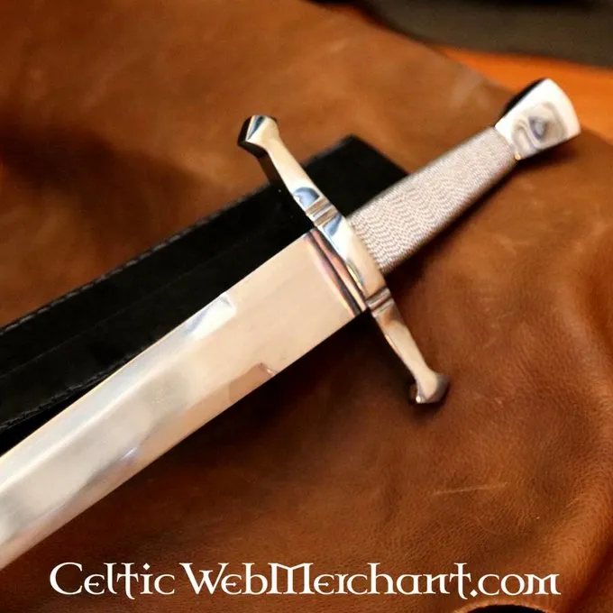 Dit korte zwaard heeft een hardhouten gevest, omwikkeld met staaldraad. Hij heeft een type T pommel (kurkvormig) en is semi-scherp. Hij is  54,50 cm lang en heeft een, klinglengte van 40 cm.