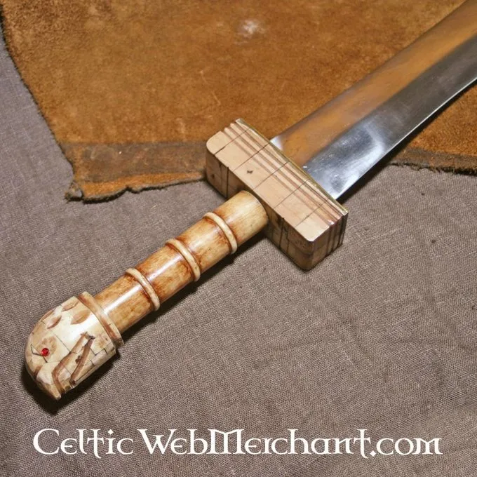 Dit zwaard is 57 cm lang, heeft een kling van 40 cm lang die uitloopt in een bladvorm. De grip is gemaakt van been. Het zwaard weegt 1 kg en wordt geleverd inclusief luxe schede.
