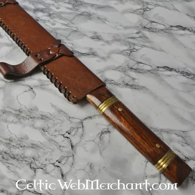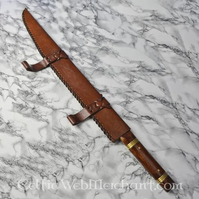 Productdetails: Lengte: 73.5 cm / Klinglengte: 55.5 cm / Griplengte: 18 cm / Gewicht: 906 g / Staaltype kling: EN45 koolstofstaal hardheid 48 HRC. / Snede: Semi-scherp / Tangconstructie: Volledige tangconstructie / Grip: Hout / Gebaseerd op historisc…