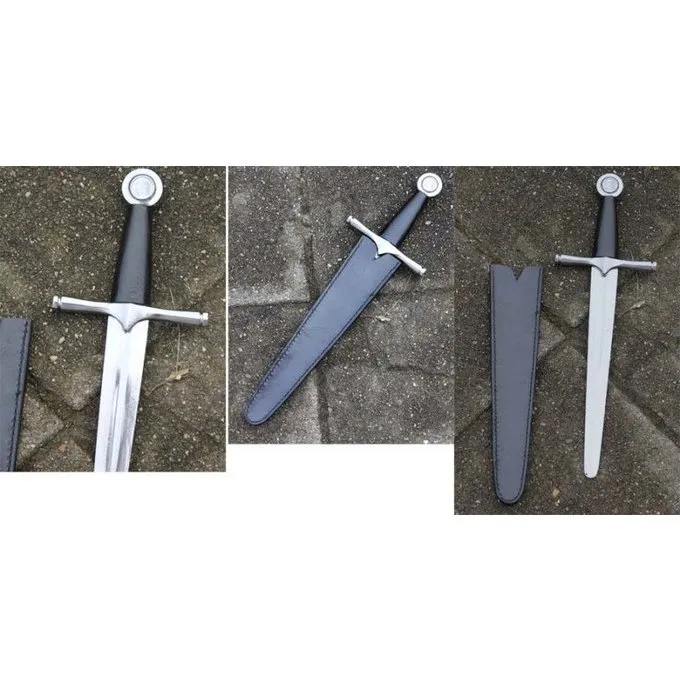Productdetails: Lengte: 44 cm / Klinglengte: 31 cm / Griplengte: 13 cm / Gewicht: 650 g / Staaltype kling: En45 koolstofstaal hardheid 48 HRC. / Snede: 3 mm (battle-ready) / Tangconstructie: Volledige tangconstructie / Pommel: Geschroefd / Grip: Hout, lee