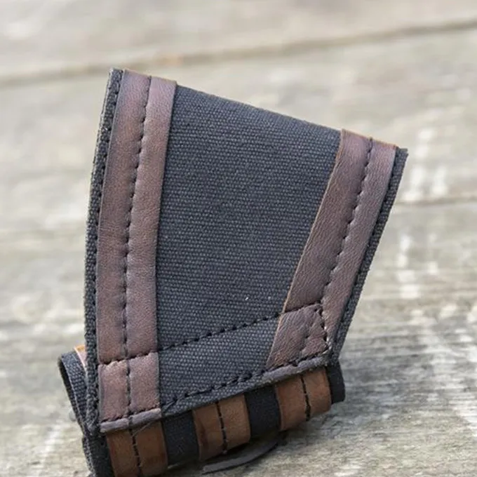 Deze LARP houder is geschikt voor verschillende LARP wapens zoals dolken en zwaarden. De houder is vrij kort en geschikt voor wapens met een max. diameter van 5 cm. Hij kan op maat worden versteld met de veters. Hij heeft een lus om hem aan je riem te hangen, zodat je je wapen snel kunt pakken tijdens LARP battles. De houder is gemaakt van stevig canvas dat versterkt is met leren randen.