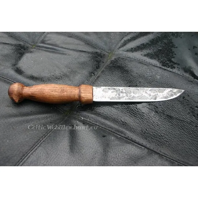 Dit gebruiksmes is gemaakt naar verschillende vroeg-middeleeuwse exemplaren. De messen werden onder andere veel door de Vikingen gebruikt. Hij is geheel handgemaakt en ongeveer 29 cm lang.