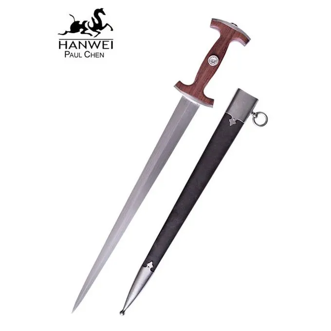 Productdetails: Lengte: 50 cm / Klinglengte: 37 cm / Griplengte: 9 cm / Gewicht: 340 g / Staaltype kling: 5160 koolstofstaal / Tangconstructie: Volledige tangconstructie / Pommel: Geklonken / Grip: Hout / Gebaseerd op historisch origineel: Ja /