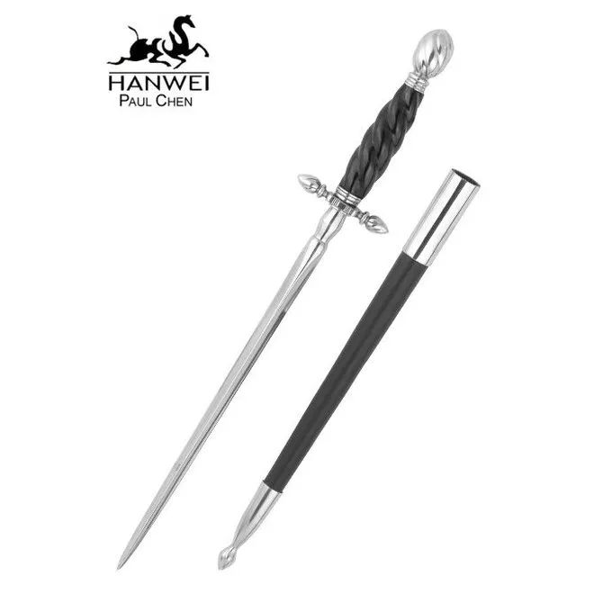 Dit penmes of stilettodolk is een replica van een 16de eeuws origineel. Stiletto dolken zoals deze waren een Italiaanse doorontwikkeling op de middeleeuwse rondel. Deze luxe stiletto heeft een handgedraaide houten grip en is voorzien van een kling gemaakt van koolstofstaal. Hij wordt inclusief leren schede geleverd.