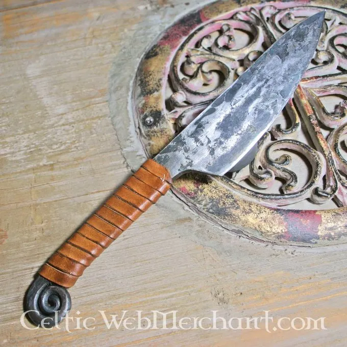Productdetails: Lengte: 25 cm / Klinglengte: 13.5 cm / Griplengte: 11.5 cm / Gewicht: 200 g / Staaltype kling: IJzer / Snede: Scherp / Grip: IJzer, leer / Gebaseerd op historisch origineel: Ja /