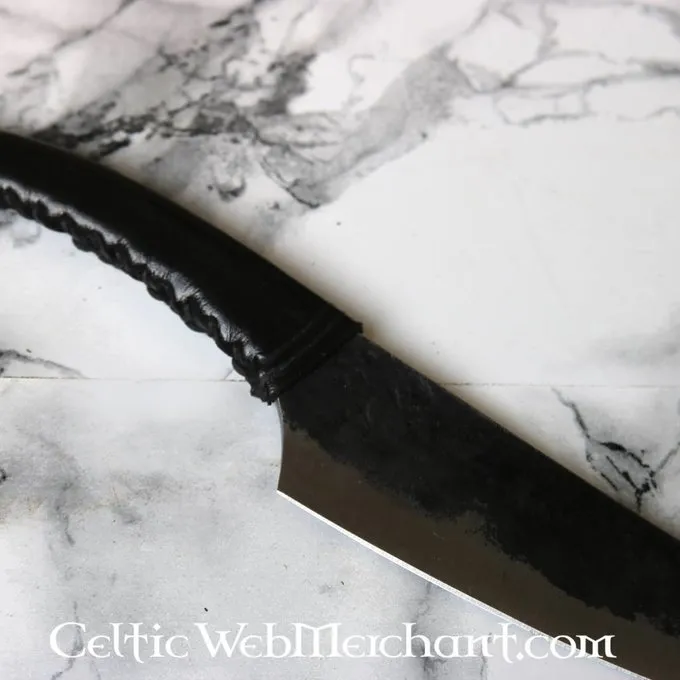 Dit Keltische mes is gemaakt naar verschillende originelen uit de La Tèneperiode. Het mes is handgesmeed uit één stuk ijzer. De grip is omwikkeld met runderleer. Dit mes wordt inclusief leren hoesje geleverd, het hoesje kan aan de riem worden bevestigd.