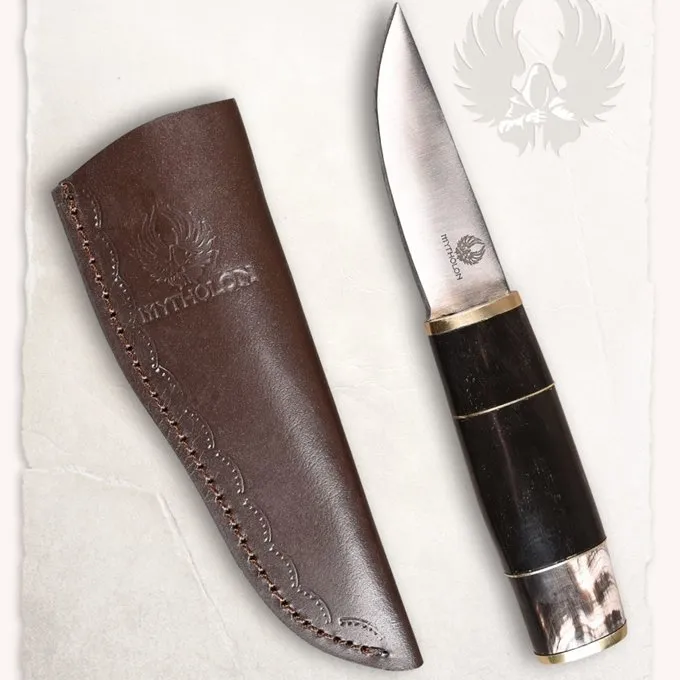 Dit vikingmes is gebaseerd op verschillende originelen. Messen zoals deze werden overal in de Vikingwereld én ver daarna gebruikt. Dit degelijke mes heeft een lemmet dat door de gehele grip loopt. Het lemmet is gemaakt van koolstofstaal met een hardheid van ca. 50 HRC. De grip is gemaakt van hoorn en messing.