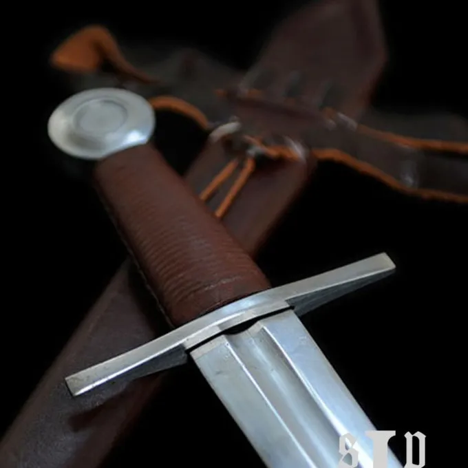 Dolken waren zeer populair tijdens de middeleeuwen. De dolk was een veelgebruikt wapen door ridders, boogschutters, piekeniers, voetsoldaten etc. Naast hun meest voorname wapen, zoals de boog, was de dolk belangrijk voor één-op-één gevechten en zelfverdediging. Men droeg de dolk aan de riem zodat hij snel getrokken kon worden bij noodsituaties. Deze dolk is gebaseerd op hoogmiddeleeuwse originelen. Hij heeft een bruine leren grip met houten kern, een volledige tangconstructie en een geklonken pommel. De wielpommel en rechte pareerstang zijn volledig in de stijl van de Hoge Middeleeuwen. De dolk wordt geleverd inclusief een zeer luxe schede gemaakt van hoge kwaliteit leer.