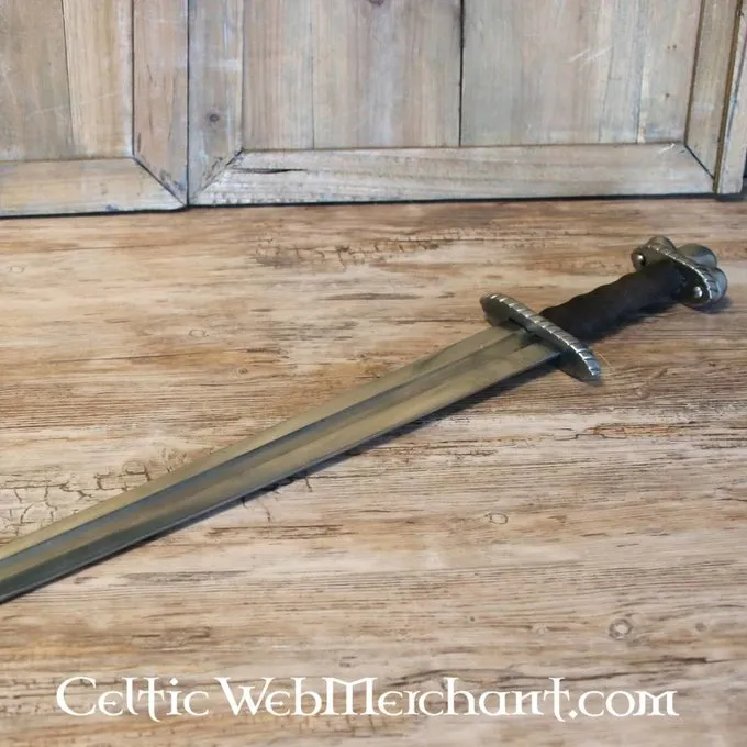 Het origineel van dit Vikingzwaard had een dubbele snijkant. Mogelijk was hij afgeleid van de Keltische en Romeinse cavaleriezwaarden. Het zwaard zou niet alleen als gevechtszwaard hebben gediend, maar ook om de status van de drager direct kenbaar te maken. Toen het Romeinse rijk instortte nam de Germaanse en Frankische aristocratie de ontwerpen van het ijzertijdzwaard de spatha over. Zwaarden werden minder gedecoreerd en de pareerstang werd breder. De pommel bleef echter gedecoreerd worden, zwaarden rond deze tijd waren niet op balans gebouwd en dat gaf de kunstenaar de mogelijkheid om gevarieerde decoraties opde pommel aan te brengen.