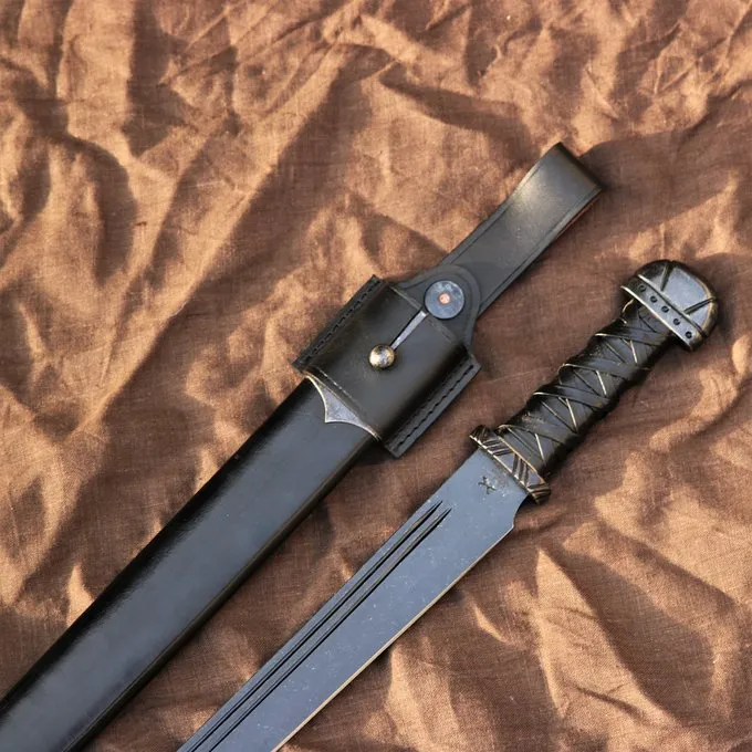 Deze sax is geweldig als werkmes of vechtmes, een solide wapen met een goede balans. Dit is een klassieke replica van een Vikingsax. De sax was het favoriete wapen van de Vikingen en ging altijd mee, omdat hij praktisch is en goed om mee te vechten. Deze sax heeft net als de originelen, een kromming in de kling. Daardoor is de sax een perfect wapen om mee te hakken en te houwen. Deze prachtige gepatineerde sax heeft een authenetieke pommel, en een grip met traditionele leerwikkeling. Hij wordt geleverd inclusief een schede en certificaat.