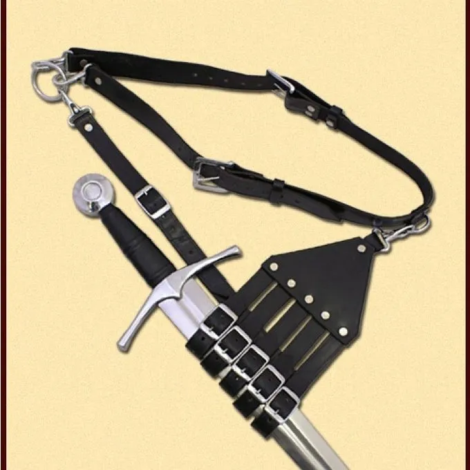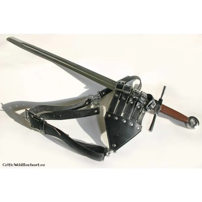 Deze riem is geschikt voor rapieren en zwaarden. Hij is gemaakt van 4 mm sterk leer, is 135 cm lang, 4 cm breed en weegt 0,8 kg.